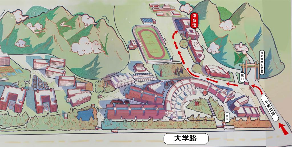 考生凭身份证、准考证从学校东门进入考点,沿专用路线到达考试封闭区(体育馆)。沿途有安保人员引导和路线指引。除考生外,陪同人员禁止入校。